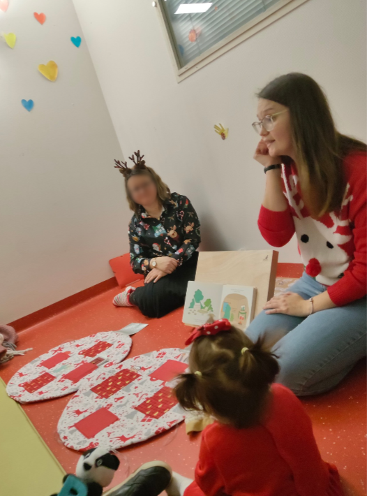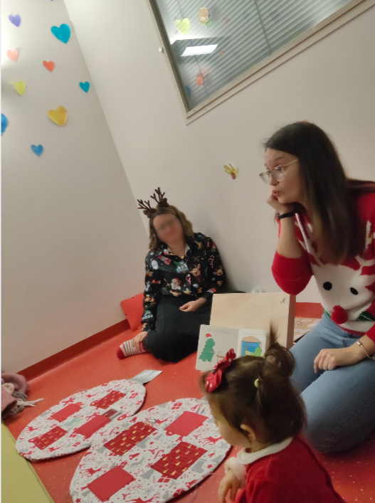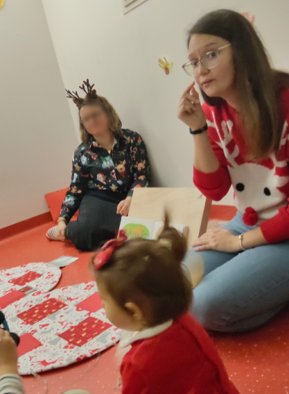 Temps de lecture de contes et de chansons de Noël accompagnés de signes, partagé avec les enfants et les familles de la crèche de Saint-Porchaire, à l’occasion de la fête de Noël – Décembre 2025.